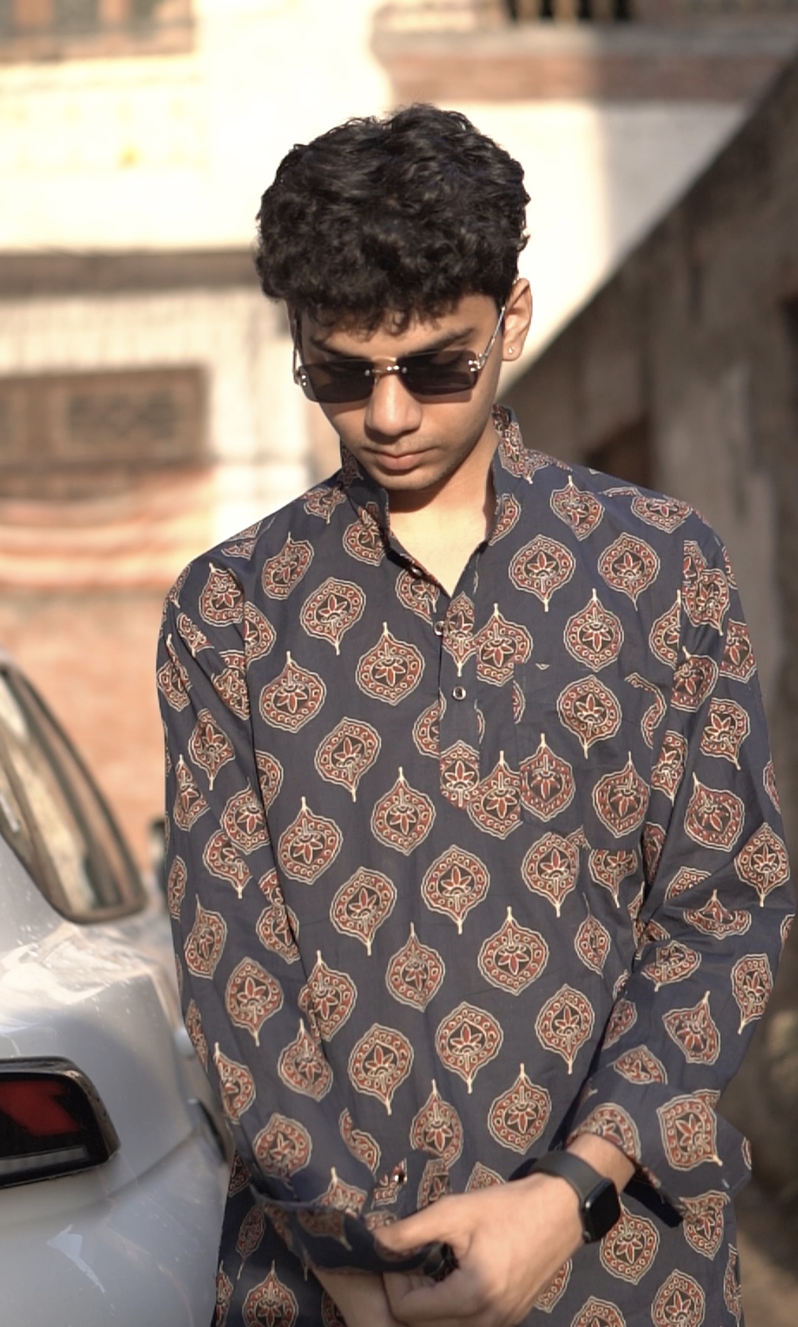 Darpan is a dark blue Ajrak fabric based unisex shirt from Kinkhab, that blends centuries old Indian eco-friendly block printing with modern silhouette. It carries the soul of Indian textile with providing everyday comfort for humid summers. It’s stitched from lightweight and comfy cotton, to maintain the body temperature. It can be styled in several ways with pants, pyjamas, palazzos, denims, etc.