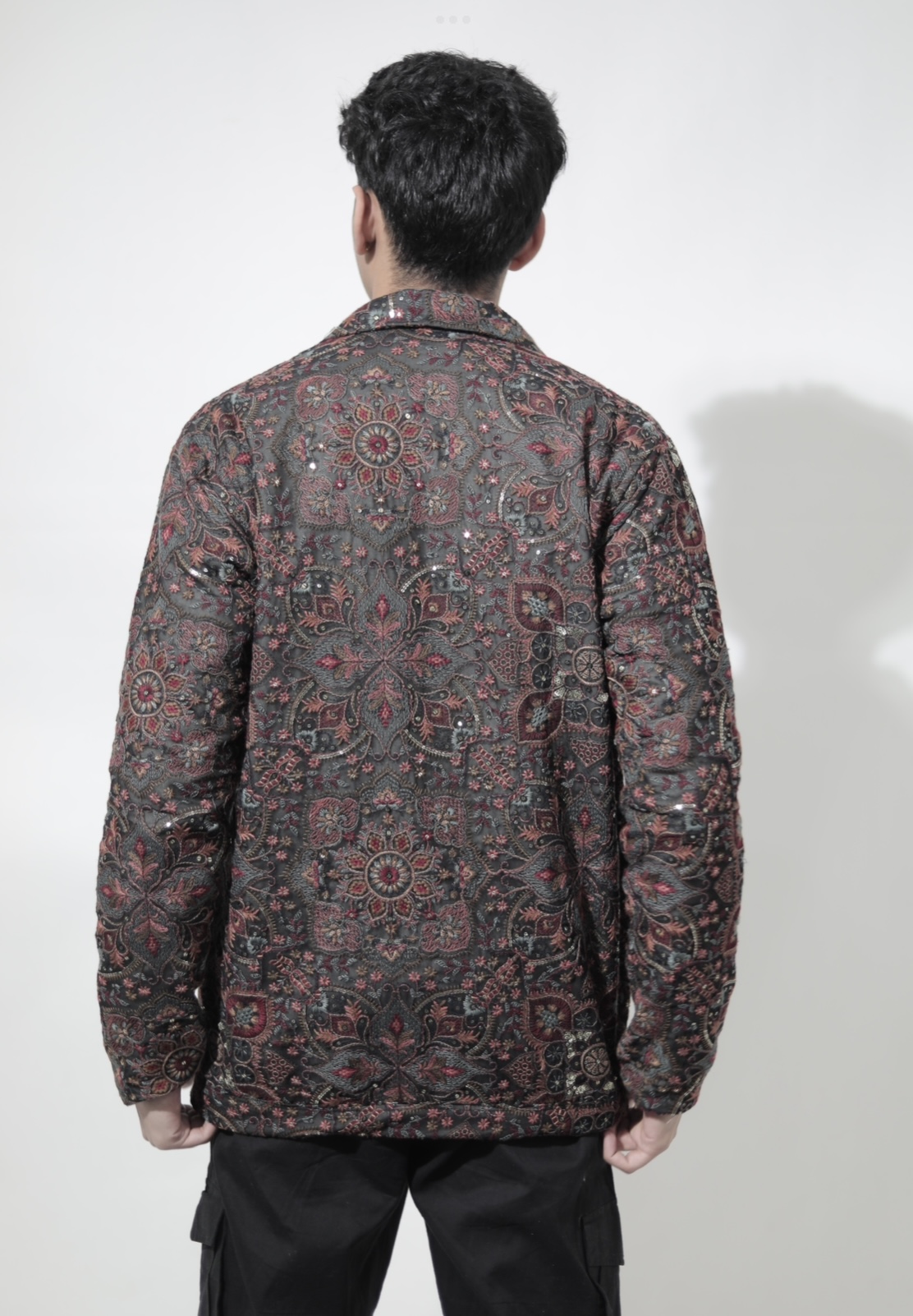 Siyahi is a masterpiece woven to represent royalty. It is a black Chikankaari embroidered winter jacket that blends the heritage of Lucknow with a bold mordern edge of streetwear. The Chikankaari from outside has a woollen lining from inside, also making it warm to wear. It’s a perfect piece to light up this shaadi season and the wedding parties.