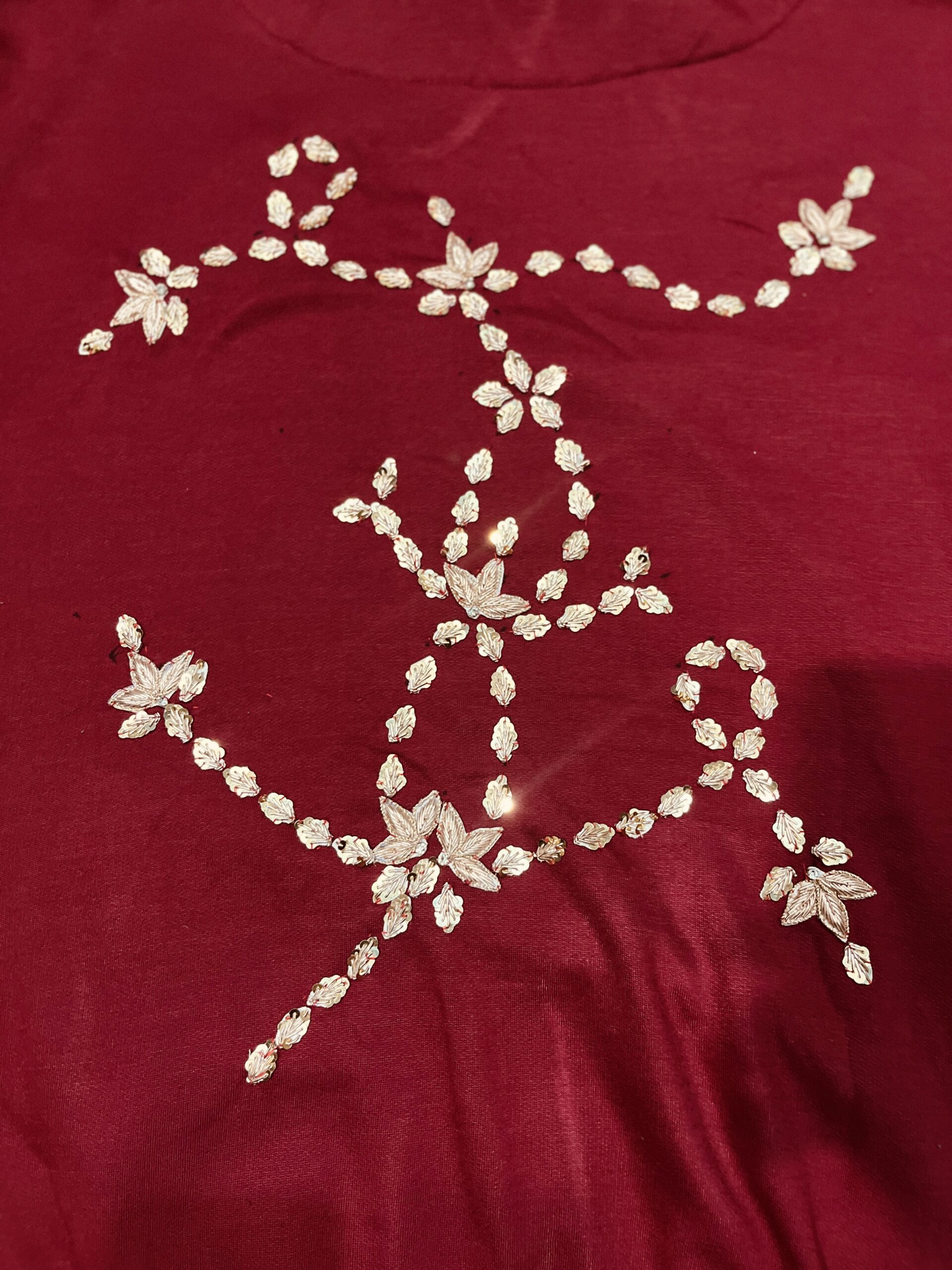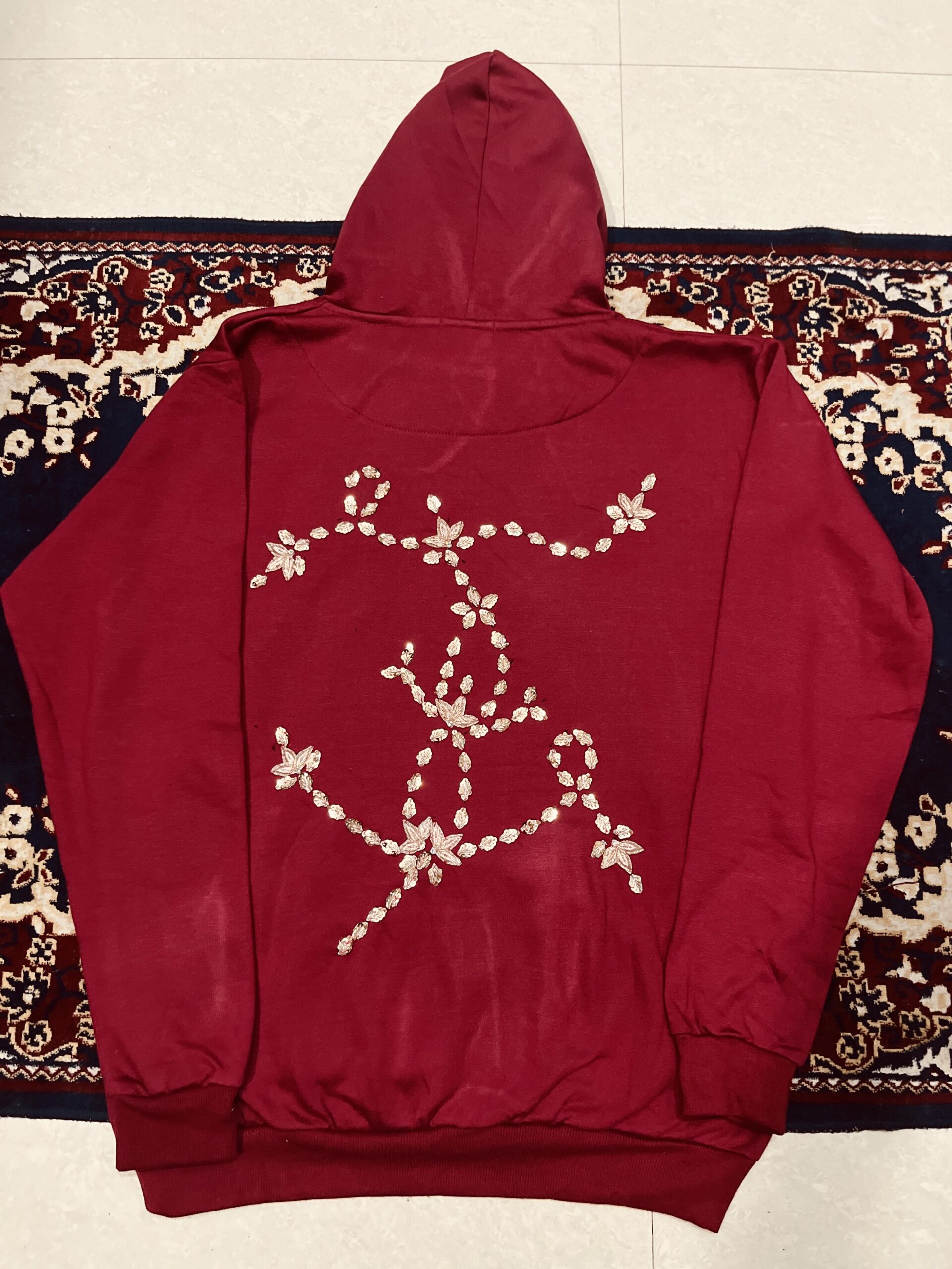 Virasat is elevated with intricate handwork of Jardosi weaving style, giving it very lavish attire. It’s in dark red laal colour with golden sunehri motifs pattern. It’s an absolute balance of streetwear hoodies with the contemporary Indian textile patterns. It’s specially designed to symbolise confidence, luxury with power.