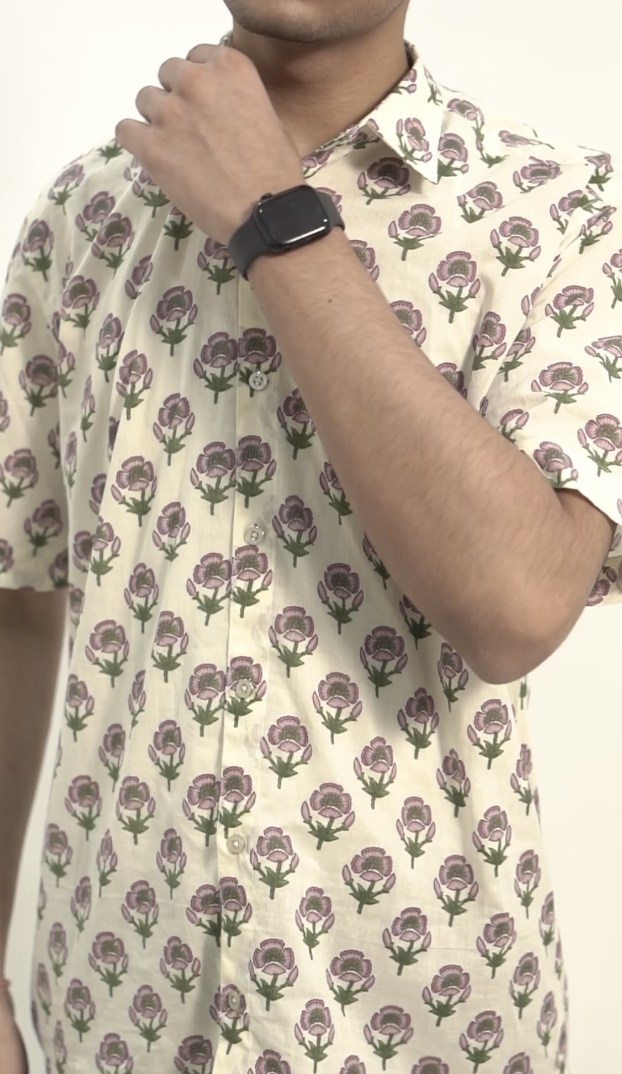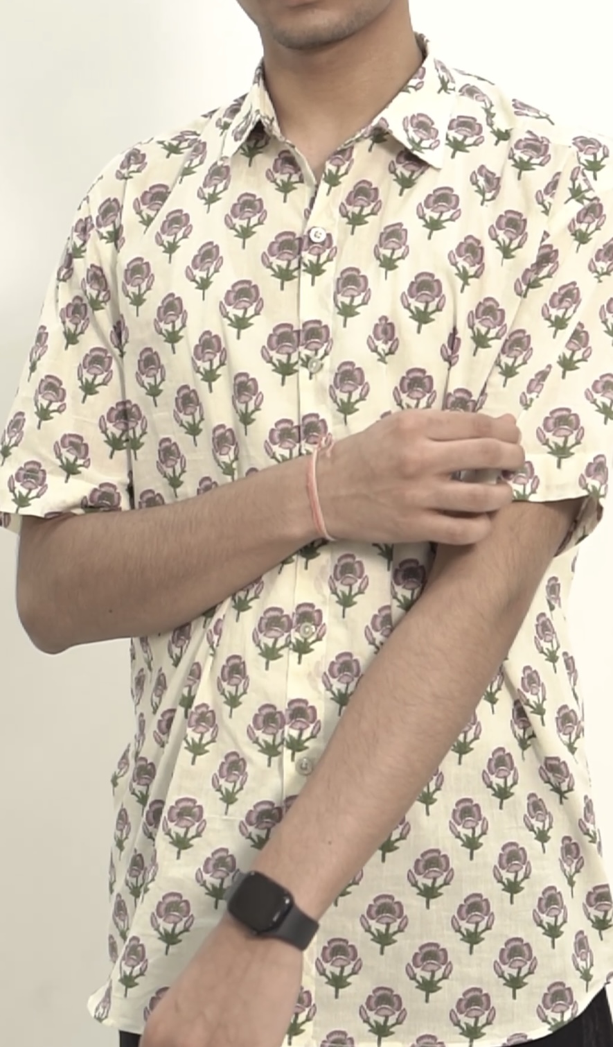 Tejas is one of the Kinkhab’s premium summer collections. It’s crafted with breathable cotton which is built for everyday comfort. The shirt is oversized and has motif designs of Lotus flowers on it. It represents India’s ancient handblock printing work and can be styled with cargos, tops, cord sets, denims, loose pants, etc.